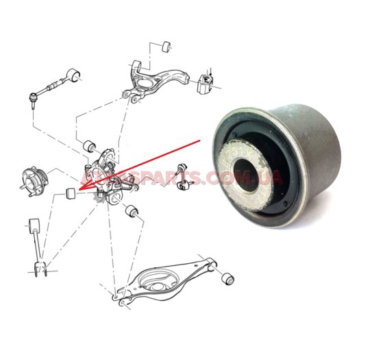 Сайлентблок заднього нижнього важеля, передній на Lincoln MKS виробництва Moog, і аналоги